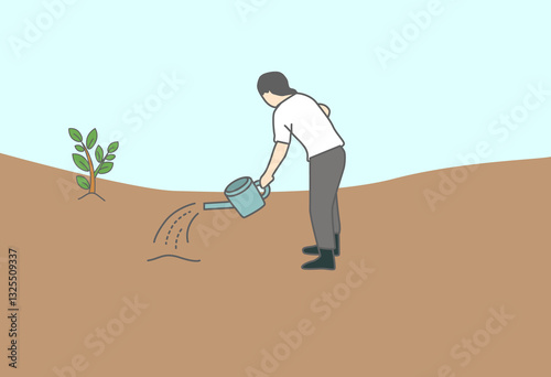 ecological, landscaping, gardening, farming, scoop, nature, plant, gardening, greening, working, labor, field, environmental issue, bucket, farming, people, business, illustration, vector