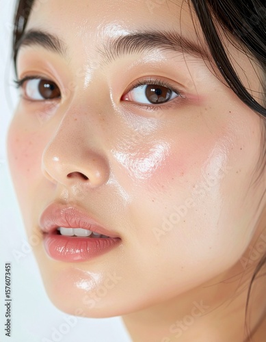 日本人, 超リアル, 美しい, 若い女性, 顔, クローズアップ, 欠点のない肌, 輝く肌質, ナチュラルメイク, 柔らかなライティング, 美容CM風, シネマティック, カメラ目線, 高解像度,Japanese, ultra-realistic, beautiful, young woman, face, close-up, flawless skin, glowing complexion