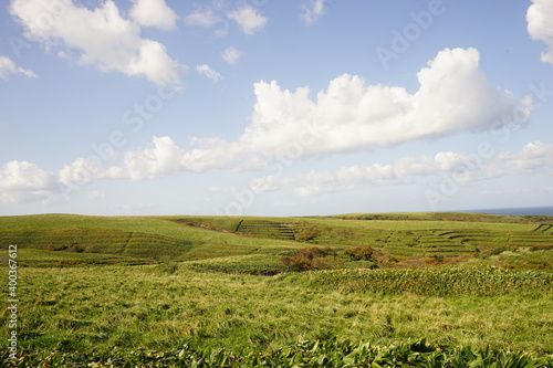 宗谷丘陵 北海道 稚内市 日本 - Green grass swaying in the wind at Soya Hills in Hokkaido, Japan