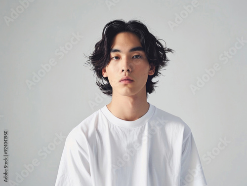 man, beauty, face, person, model, 1, hair, brunette, fashion, up, look, eye, pose, glamour, studio, t-shirt, standing, good-looking, guy, businesslike, shirt, white
