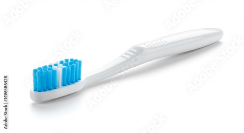 清潔な白い歯ブラシ 爽やか青色毛先 清潔感漂う写真. AI Generated