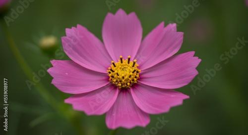 flower, pink, cosmos, flower petals, center, yellow, pretty, lovely, plant, nature, garden, flower garden, closeup, macro, photo, image, background, bokeh, pigmentation, yellow, vivid, daintiness, pitiful, elegant, romantic, spring, summer, fall, bloom, grow, pollen, stem, leaf, green, field, grass, light, light, shadow, beauty, calm, quiet, healing