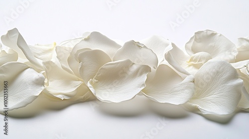 A cluster of white blossoms resting on a pure background, centered by a single flower