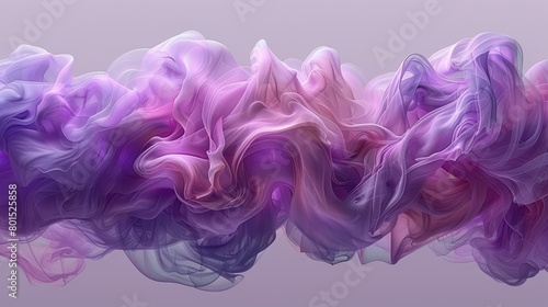 A group of purple and pink smoke bubbles float against a gray and purple backdrop with a white border
