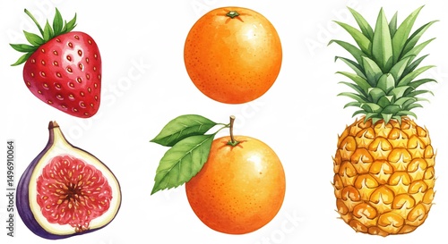 strawberry, orange, pineapple, fig, fruit, fruit, food, food, picture, illustration, portrait, refreshing, vitamin, alimentation, health, breakfast, sweet, fresh, nature, plant, fruit, crop, farming, produce, food, material, design, background, image, image, photo, picture, art, work, art, motif, device