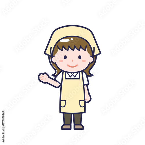 adult, 30s, 50's, middle-aged, occupation, sideline, housekeeping, staff, apron, sling, housekeeper, woman, smile, joyful, fun, happy, enjoyment, positive, light, lively, courteous, greeting, expression, feeling, icon, pose, sweet, people, simplex