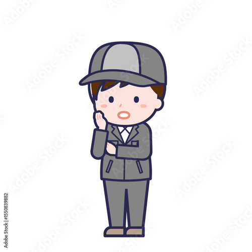 adult, occupation, work, working man, staff, production, logistic, labor, factory, hat, man, embarrassment, impatience, apprehension, sad, expression, feeling, icon, pose, sweet, people, simplex