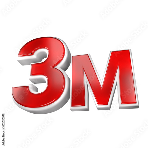 3D Red 3M Text Icon with Transparent Background for Social Media and Marketing