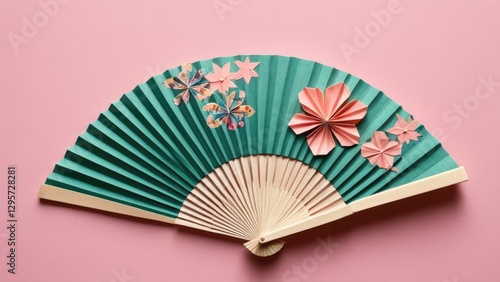 fan, origami, decoration, green, craftsmanship, traditional, hand-made, elegant, artistry, design, unique, aesthetic, beauty, seasonal, celebration, design element, gift idea, textured, stylish, ornamental, home decor, summer, creative, colours, elegance