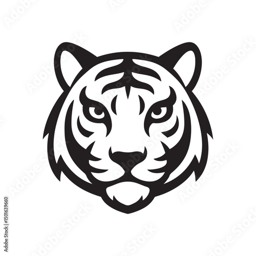 a bold black outline vector illustration of a tiger head on white background