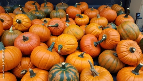 A bountiful harvest of pumpkins in a market display