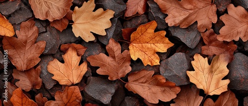A cluster of leaves atop a rocky mound, overlapping yet distinct