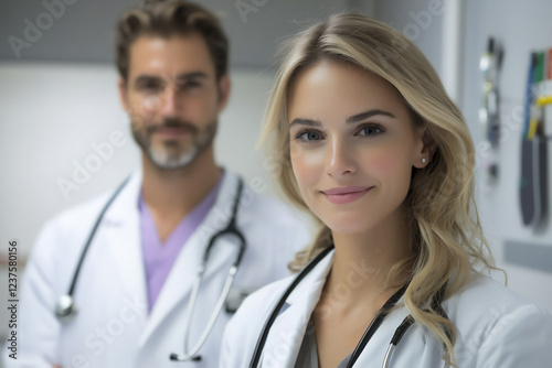 doctor, patient, clinic, health care, medicals, indoor, professional, diagnosis, treatment, interaction, care, allergy, nurse, woman, medicine, hospital, health, stethoscope, people, team, smiling, group, uniform, doctor, smile, staff, standing, 2, men at work, work