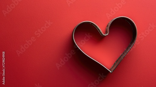 a heart shaped cookie cutter sitting on top of a red surface with the shape of a heart in the middle of the cookie cutter, on a red surface with a red background.