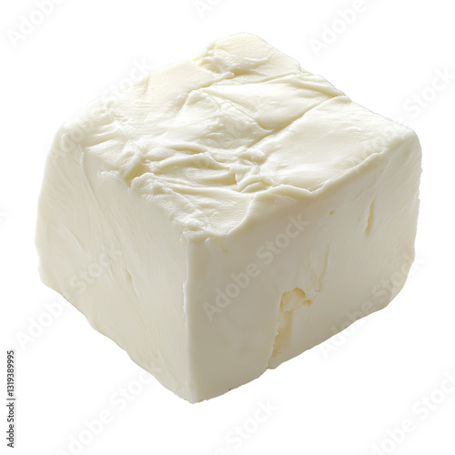 A piece of plump and fluffy square mozzarella cheese with a smooth texture presented on an isolated transparent background PNG
