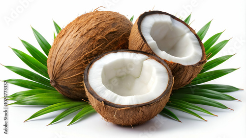 coconut, cut-out, tropical fruit, food photography, health food, exotic fruit, nature, fresh produce, organic