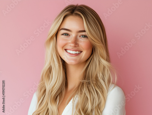 woman, beauty, smile, face, hair, smiling, salon, coiffure, shampoo, model, person, people, 1, fashion, studio, looking, lady, blond, happiness, closeup, blond, eye, teenage, cute, casual attire, glamour, joy, head