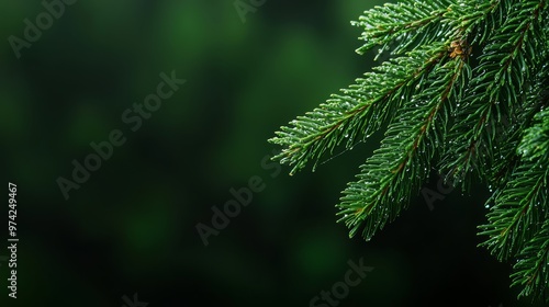 A tight shot of a pine branch, adorned with verdant foliage, against a softly blurred backdrop