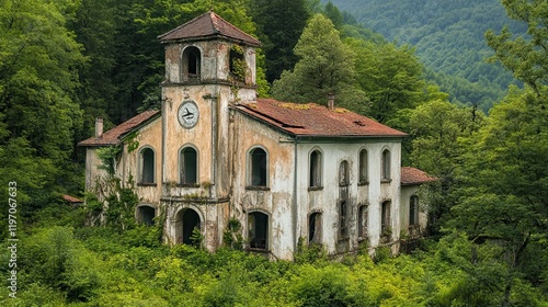 Abandoned monastery in the forest