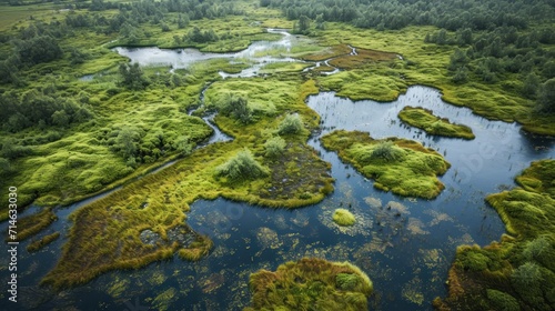 an aerial view of a river running through a lush green field with lots of trees and grass on both sides of the river and in the middle of the water.