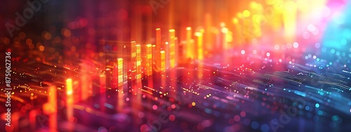 Bar charts with many colors going up and down for stock market investment or bright colorful banking charts