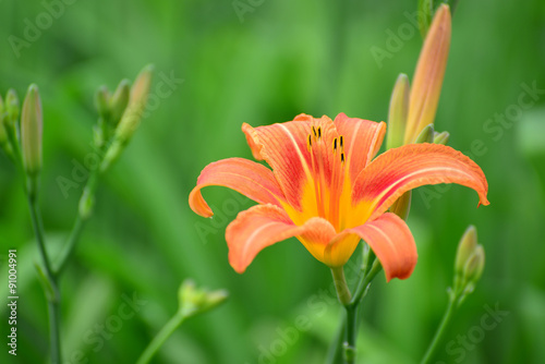 Beautiful orange lilies in the garden