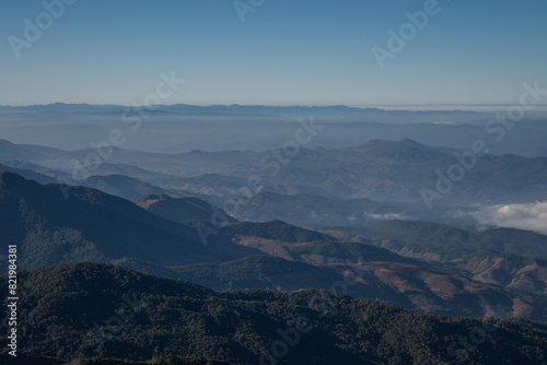 beautiful view of mountain with clouds at sunrise (Doi Inthanon National Park, Chiang Mai), soft focus