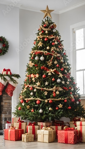 Beautifully Decorated Christmas Tree with Gifts and Festive Decorations