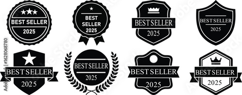 "Best Seller 2025 Badge Icons – Premium Label Designs in Black"