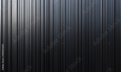 Black corrugated metal texture. Wall wooden vertical panels. Dark steel roof sheet. Wood siding for construction.