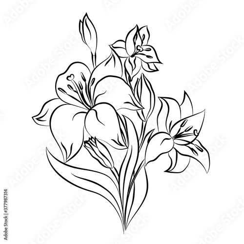 bouquet of lilies, line drawing, without a background, isolated. Vector illustration