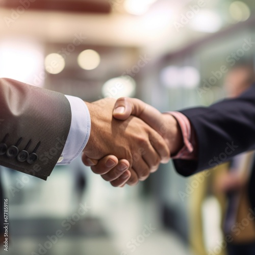 Business People Shaking Hands in a Meeting, Blurred Background Signifying Productive Collaboration and Agreement