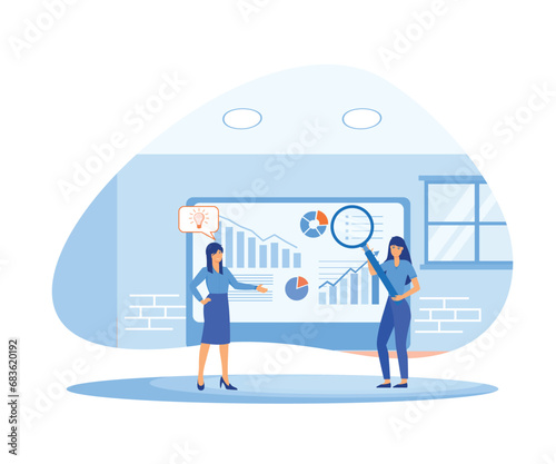datum, analysis, people, information, business, work, teamwork, canvasses, stock, stock exchange, management, finance, strategy, report, woman, job, professional, graph, growth, technology, female, success, working, woman, men at work, planning, discussion, analysing, communication, project, manager, marketing, presentation, market, client, target, product, statistic, magnifying, vector, illustration, flat, character, concept, isolated, icon