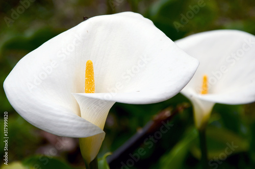 single, elegance, delicate, head, macro, soft, botany, natural, ecology, gardening, park, calla lily, white flower, closeup, blooming, bright, summer, detail, garden, lily, plant, flower, leaf, nature, green, calla, blossom, elegant, white, beautiful, yellow, flora, colours, beauty, fresh, closeup, decorative, bloom, pure, background, image, floral, 2, view, spring
