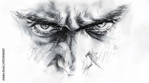 facial expression, emotion, identity, realism, depth, lighting, shadow, composition, eye, symmetry, individualism, character, facial features, nose, mouth, contour, hair, cheekbones, personality, closeup, sharpened, background, highlight, angle, perspective, black-and-white, eye contact, texture