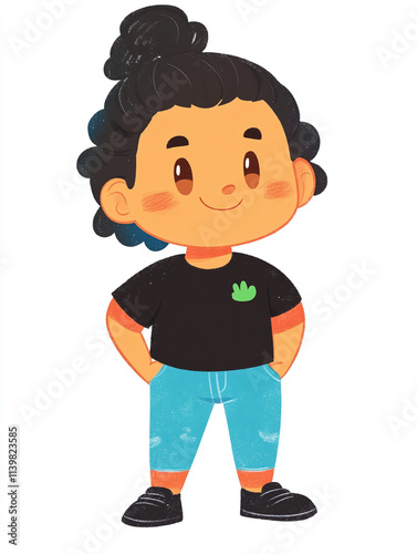 cartoon, boy, black shirt, illustration, smiling, character, modern, playful, casual attire, digital artwork, adorable, joyful, creative, cheerful, happy child, black hair, smiling boy, stylish, children, drawing, school, people, art, clip art, childhood, children