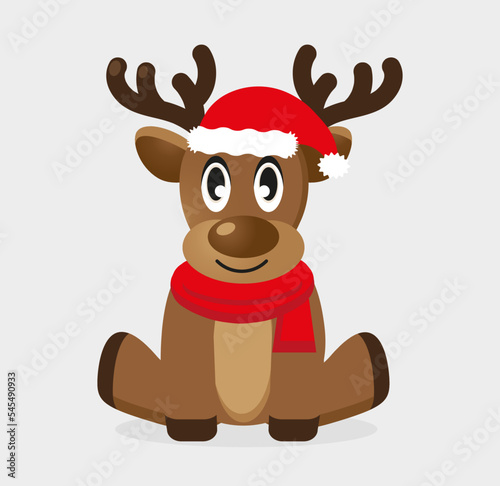 cervid, cartoon, christmas, holiday, claus, reindeer, year, december, animal, winter, vector, illustration, christmas, hat, gift, season, happy, funny, celebration, new, snow, card, cute, rudolph
