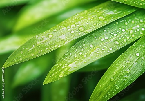 Close-up of green leaves with water droplets, a fresh and natural background.