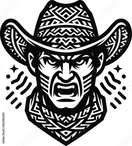 cowboy silhouete with Polynesian ethnic pattern illustration
