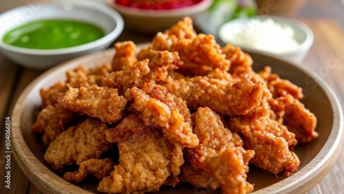 Crispy fried chicken bites with dipping sauces
