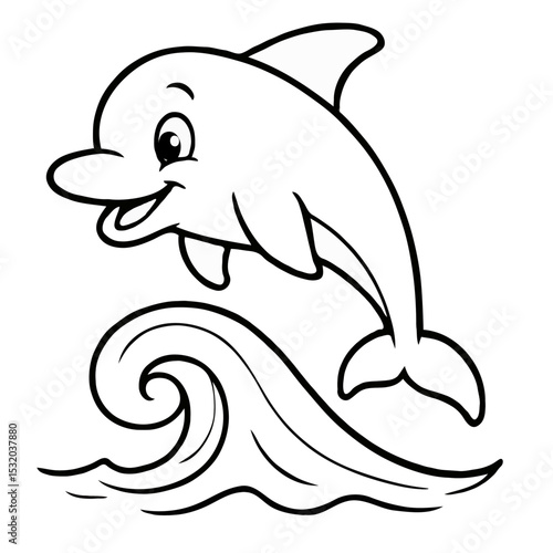 Cute Cartoon Dolphin Jumping over a Wave for Coloring Book