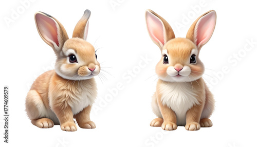 Cute Rabbit Doll Pair in Soft Pastel Colors, isolated on transparent background