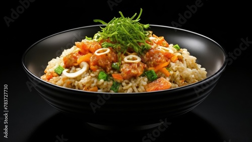 stir fry, rice, appetising, dish, presentation, culinary, sauce, onion, meat, asian cuisine, colourful, fresh, epicure, vegetable, carrot, green onion, food, garnish