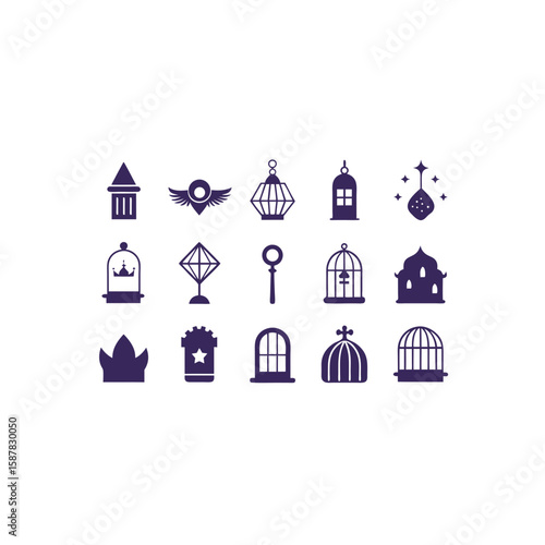 different magical cage icons set on white