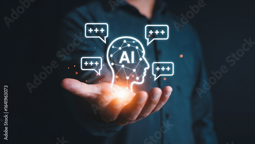 ai, artificial, intelligence, technology, communication, chat, network, digital, illustration, brain, futuristic, machine, learning, generative, innovation, concept, solution, future, development, automation, datum, cyborg, virtual, assistant, robot, science, human, thinking, creative, smart, background, business, corporate, modern, system, idea, mind, hand