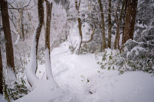 富山県中新川郡上市町と立山町にある大辻山周辺の雪が積もった風景をドローンで撮影 Drone photography of the snow-covered landscape around Mt. Otsuji in Kamiichi-cho and Tateyama-cho, Nakaniikawa-gun, Toyama Prefecture.
