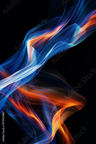 dynamic, flowing, wave, line, blue, orange, colours, background, black, abstract, art, motion, design, fluid, energy, graphic, pattern, modern, vibrant, light, technology, contemporary, waveform, smooth, curve, creative, optical, colourful, atmospheric, illustration, texture, digital, fluidity, forever, flow, element, trendy