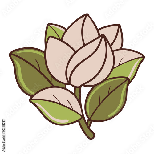 Elegant Vector Illustration of Pastel Magnolia Flower and Leaves Design