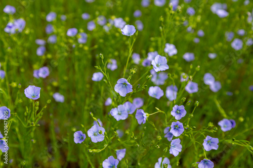 Flax field blooming, flax agricultural cultivation. Blooming flax field