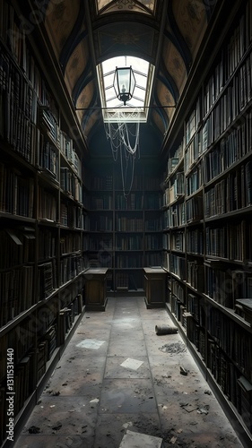 Forgotten Library of Ancient Books Covered in Dust, Cobwebs in the Corners